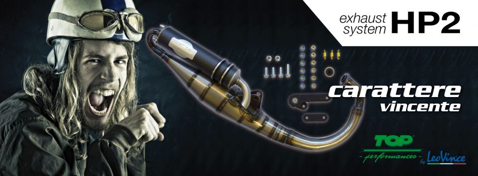 La serie scarichi Powered 2 rappresenta l’evoluzione della Powered, apprezzatissima per l’eccellente equilibrio tra incremento di prestazioni e silenziosità. Questi scarichi, destinati ai più diffusi scooter 50 cc 2 tempi, come gli HP2 nascono dalla collaborazione tra Top Performances e LeoVince.